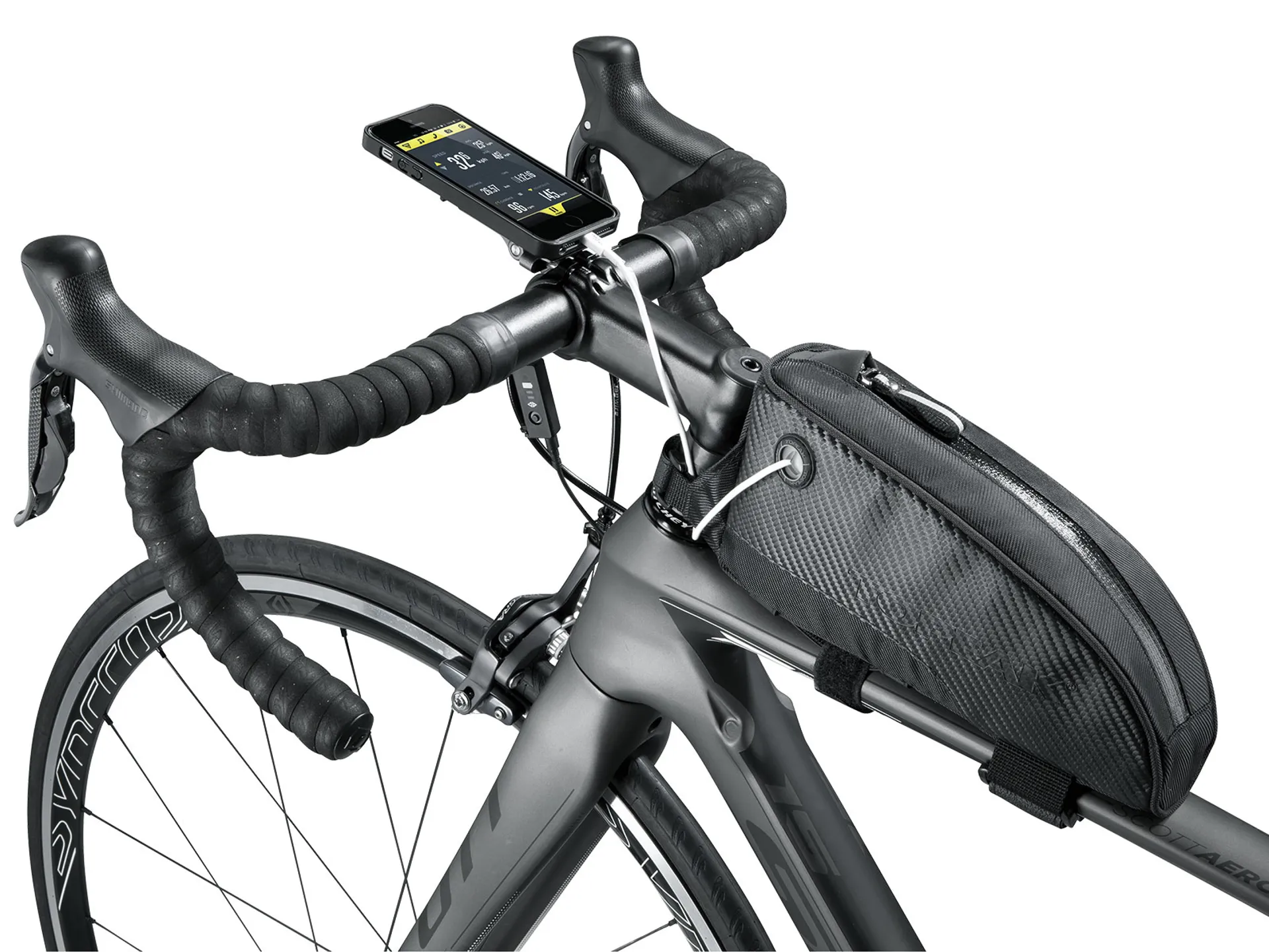 Large capacity top tube bag witheasy-to-use velcro mounting system.convenient top tube mount keepscontents close at hand. Perfect forstoring mobile phone, energy bars,wallet or tools.Features:
