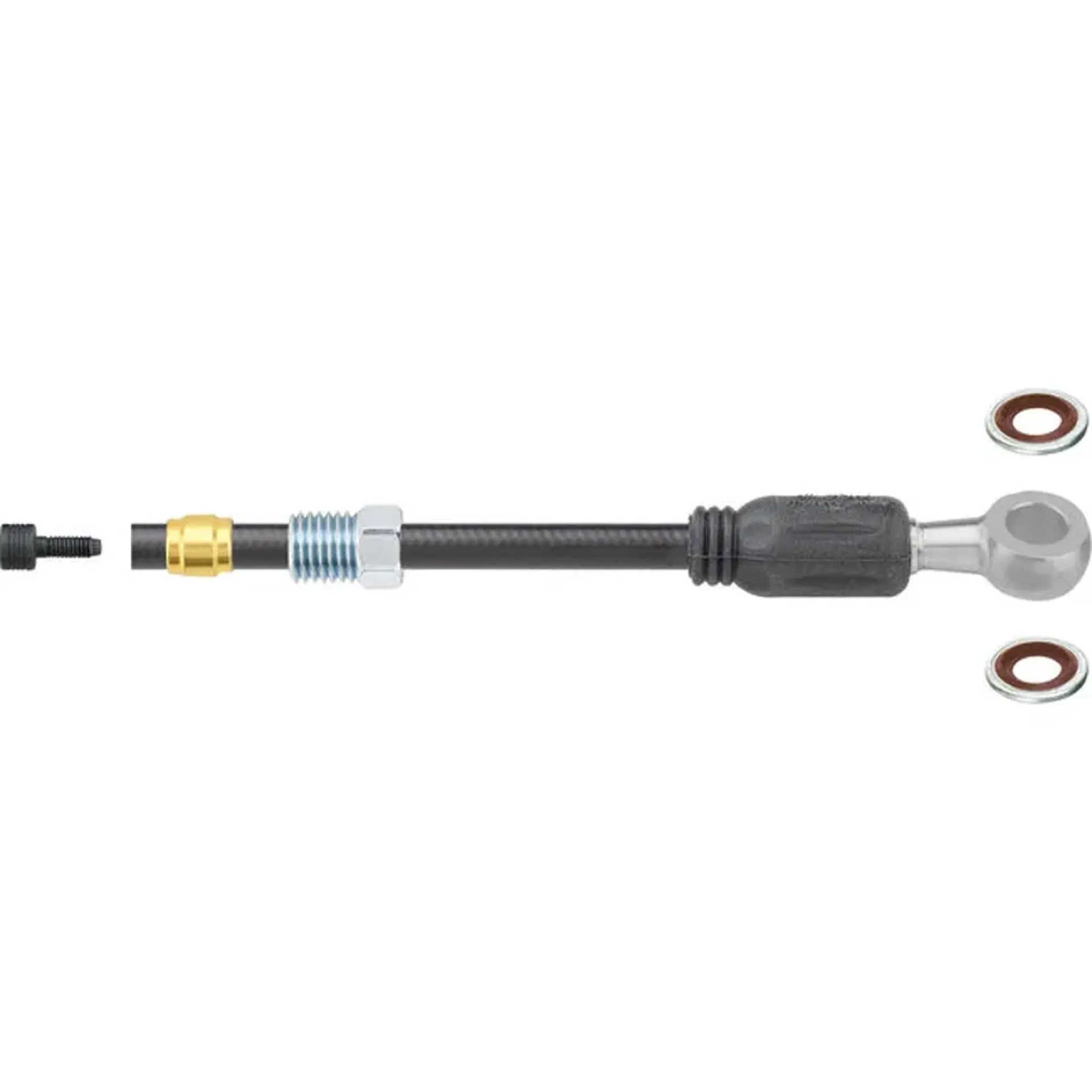 Sport Hydraulic Hose is available for most popular road and mountain hydraulic disc brake systems that use mineral oil brake fluid. These hoses are offered as single hose kits for individual brakes or in bulk boxes for workshop use.